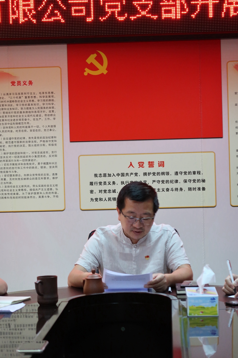 為慶祝中國共產(chǎn)黨成立99周年,共同紀念黨的生日,重溫黨的歷史,更好地回顧黨的光輝歷程,發(fā)揚黨的優(yōu)良傳統(tǒng),牢記企業(yè)肩負的歷史使命和責任擔當,不斷激發(fā)前進動力,不忘初心、砥礪奮進、再立新功。6月30日,公司黨支部在黨員活動室開展慶“七一”活動。