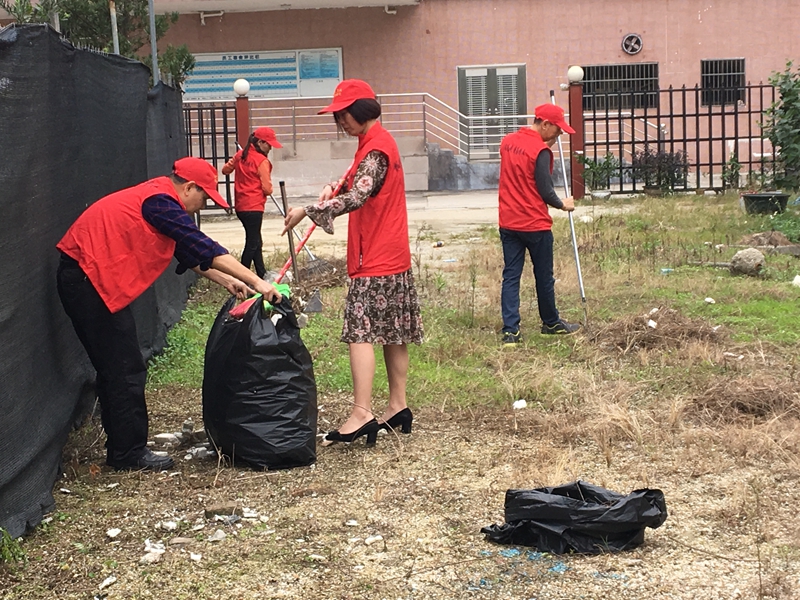 活動(dòng)于14:30分開始,志愿者們穿上“紅馬甲”,拿起掃帚、鐵鏟等工具,大家分工協(xié)作,有的扒雜草、有的掃垃圾、有的撿泡沫垃圾、有的負(fù)責(zé)垃圾裝袋……經(jīng)過2個(gè)鐘頭的埋頭苦干,空地面貌煥然一新,衛(wèi)生環(huán)境得到明顯改善。