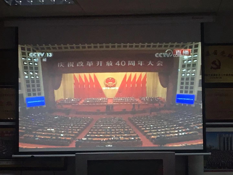 12月18日上午,公司組織全體黨員干部職工在黨員活動(dòng)室收看收聽(tīng)中央慶祝改革開(kāi)放40周年大會(huì)。