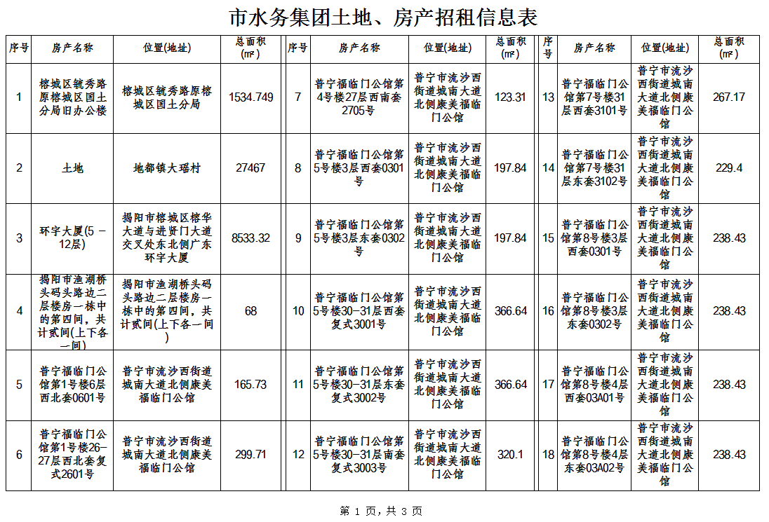 一、目前招租的資產(chǎn)概況如下:
